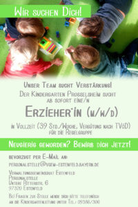 In der Gemeinde Prosselsheim werden Mitarbeiterinnen und Mitarbeiter in folgenden Bereichen gesucht: