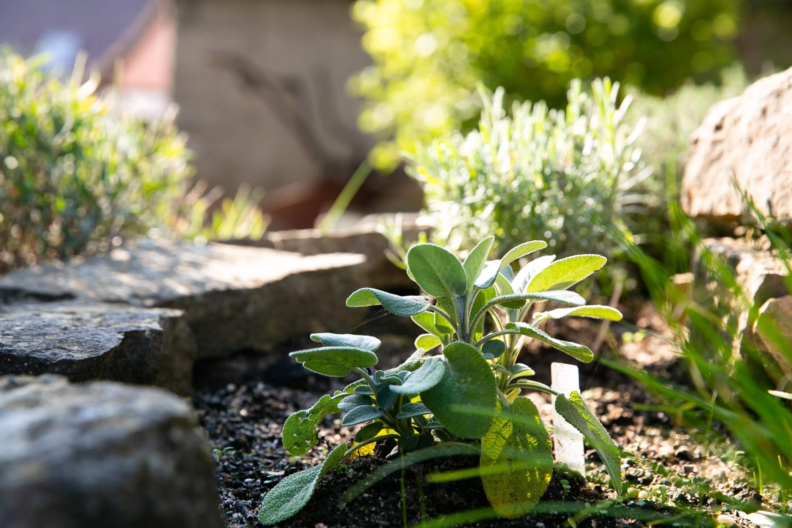 Kleine Tafeln vermitteln den Besuchenden wissenswerte Informationen zu den Pflanzen und Elementen des Bibelgartens.